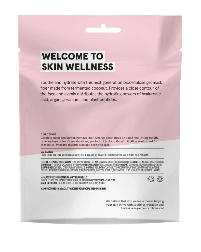 This mask evenly distributes the hydrating powers of Hyaluronic acid, argan, geranium, and plant peptides.