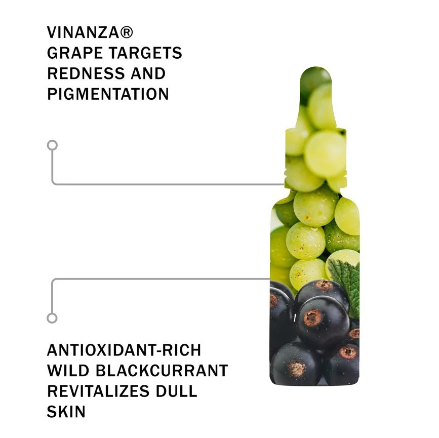 Revolutionary antioxidant Vinanza Grape & Kiwi helps minimise facial redness, uneven skin tone and dark spots. Exfoliating enzymes from the superfruit kiwi and anti-inflammatory Vinanza Oxifend from pinot noir grapes reveal glowing skin. Mamaku black fern and Reishi mushroom of immortality contribute to healthy cell renewal for luminous beauty.