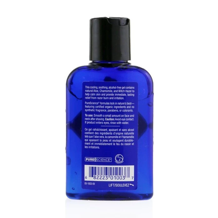 Its natural ingredients give soothing & anti-inflammatory benefits Calms skin & offers immediate, lasting relief from razor burn Heals irritated skin & alleviate redness Botanicals boost repairing of minor nicks & cuts, & fights bacteria Cooling gel works like moisturizer to prevent flaking & dryness Fragrance free, alcohol free & colorant free