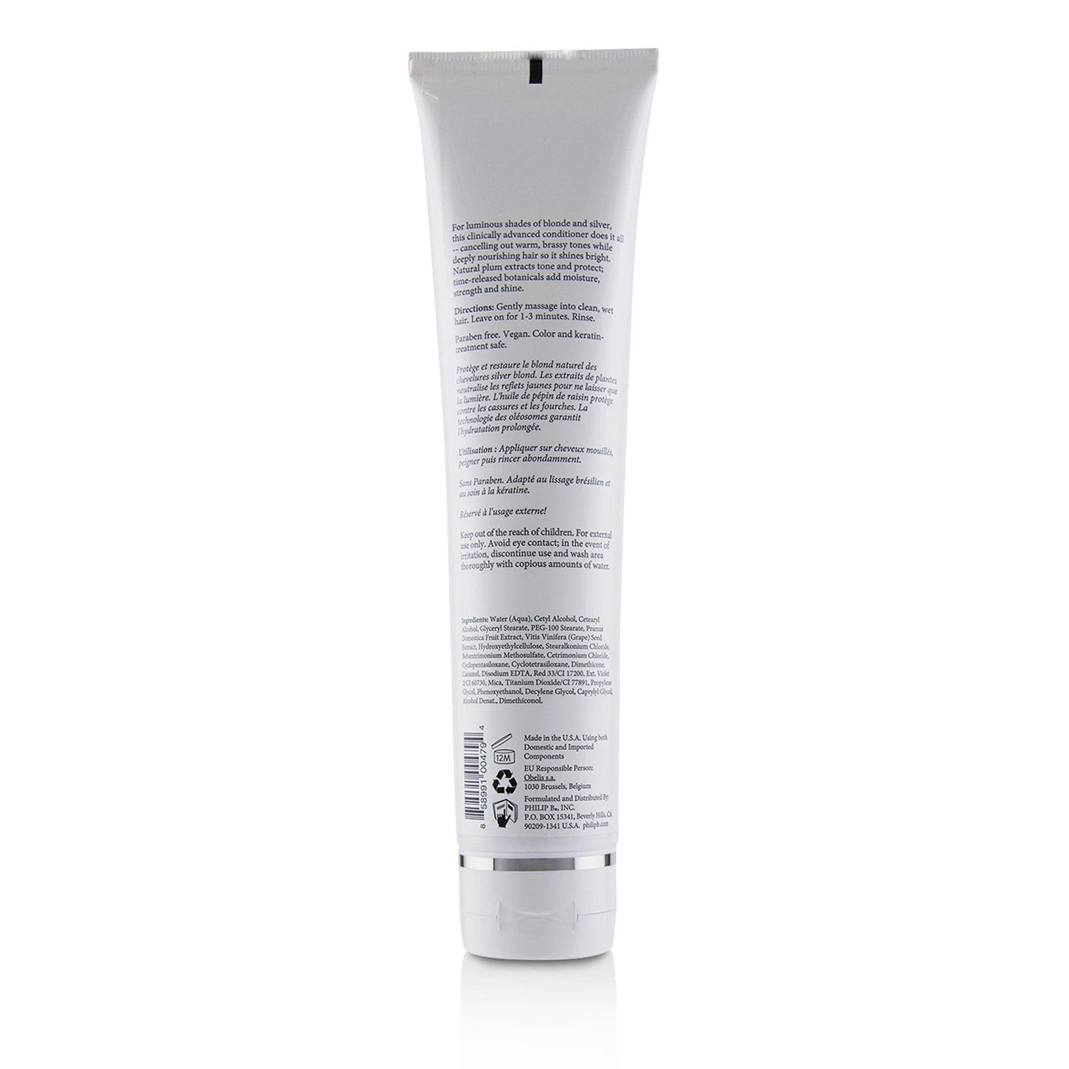 A shine boosting conditioner for blonde & silver hair Gentle formula with a rich blend of beneficial ingredients Plum Extracts neutralize brassy, yellow tones & enhance highlights Grapeseed Oil combats split ends while time-released botanicals add moisture, strength & shine Loaded with silky, shine-boosting extracts Keeps blonde or silver hair cool, bright & beautiful